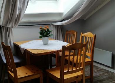 Two dedicated parking spaces will be indicated when you collect the key. The flat is on the third floor, reached by a narrow staircase. The roof windows face the back yard, so there is no traffic noise. The kitchen is well-equipped, and has a toaster, kettle, coffee machine, oven, fridge, dishwasher, iron, and cutlery/crockery for six people.