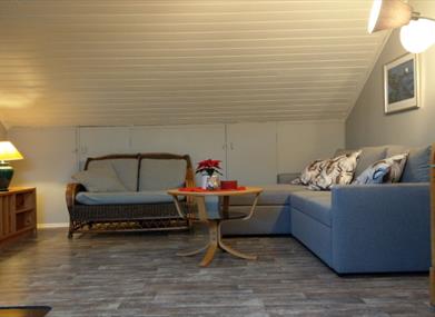 The flat is approx. 60 sq.m and has one bedroom with a 120 cm bed and an additional sleeping area for 5-6 people, containing a bed of 150 cm and a double sofa bed. Access to the bathroom is via the one bedroom.