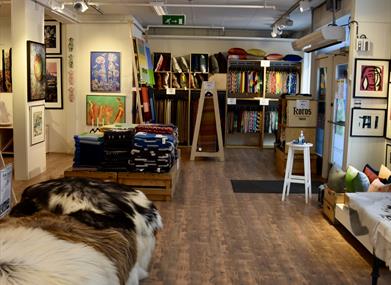 Typical products from the Røros region are Røros Tweed wool blankets and pillows, reindeer skins from Stensaasen and genuine Norwegian sheepskin from Myrvangen farm.